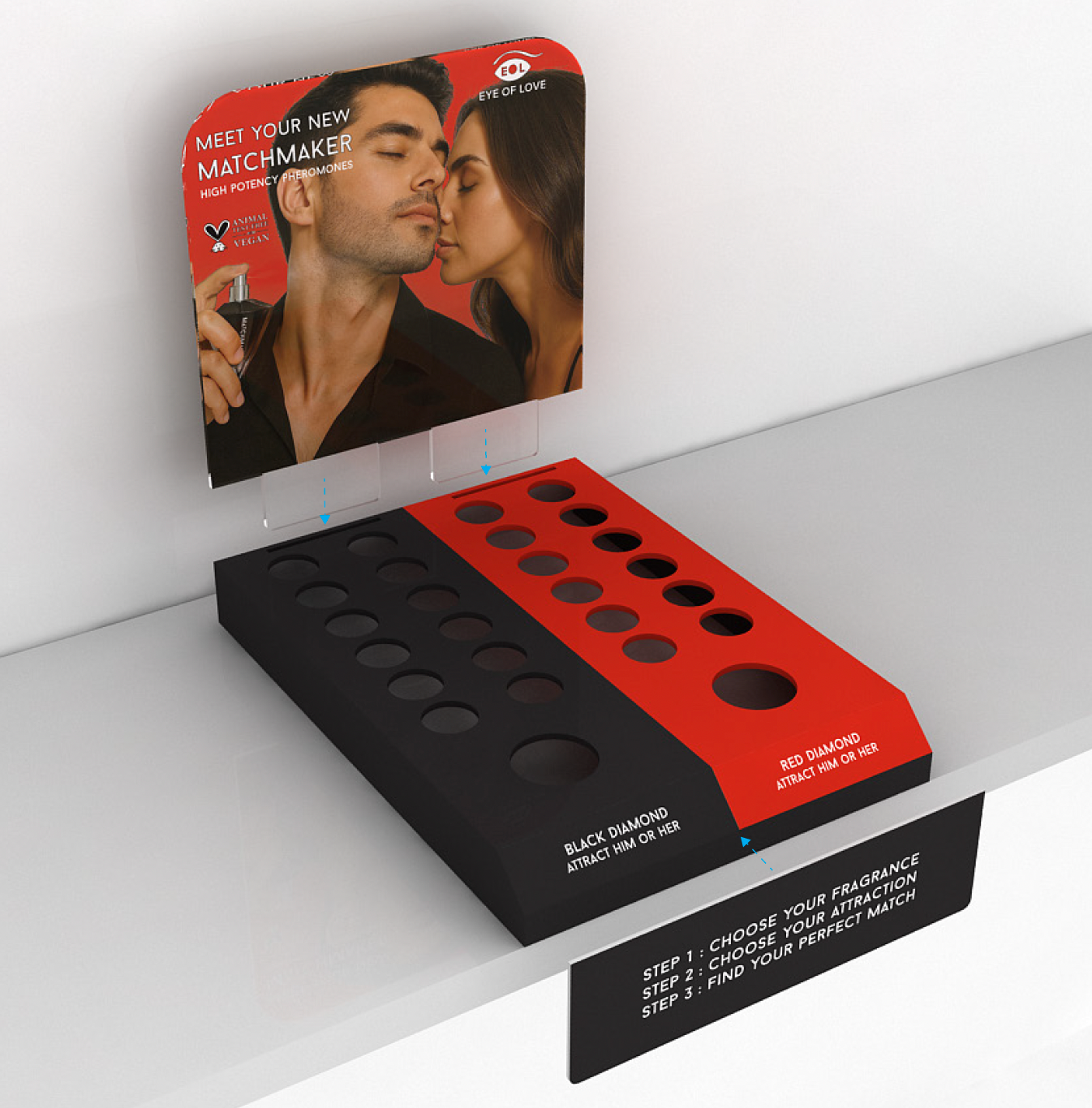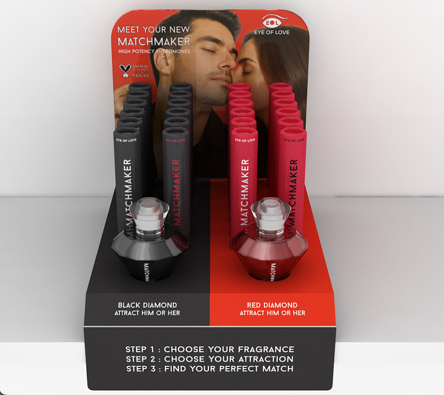 Eye Of Love Matchmaker Display Prepack is a retail ready assortment designed to drive sell through in stores, boutiques, and point of sale environments. This 24 piece display includes a curated mix of Black Diamond and Red Diamond fragrances, offering customers clear options based on preference and attraction focus.